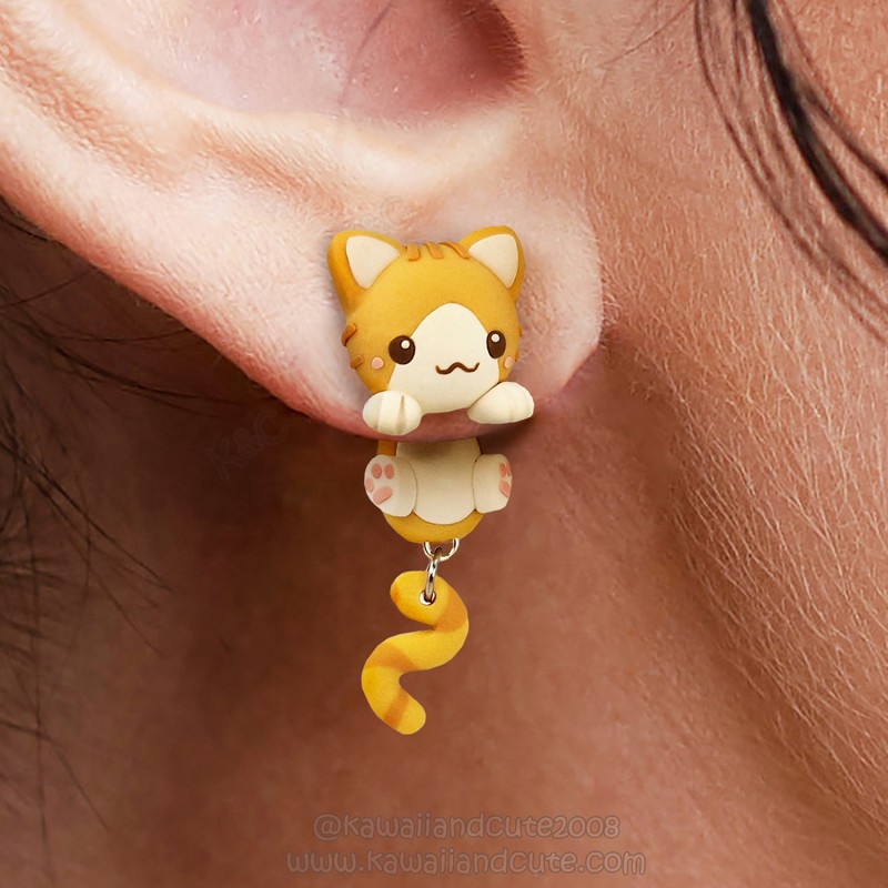 Pendientes de gatos naranja que simulan estar colgados de tu oreja, inspirados en un lindo diseño de un pequeño gatito. Regalo perfecto para los amantes de los gatos.