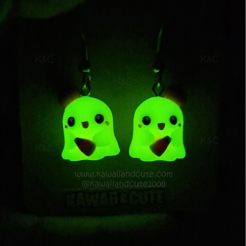 Diseño inspirado en la festividad de Halloween un fantasma kawaii que solo desea ser participe de la noche tan especial. Nuestro lindo fantasma ofrece un trato a cambio de unos dulces de maiz y calabaza ... ¿Truco o trato?. Pendientes ideales para lucir en estas fechas con la particularidad de que brillan en la oscuridad. Esperamos que los disfrutes.